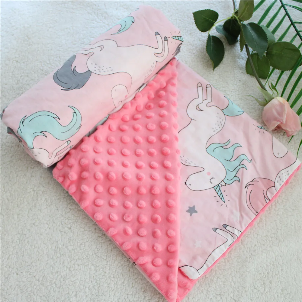 Product Name: 2 capas 3D minky dot dibujos animados de algodón coral polar suave térmico niño manta de bebé para el invierno niños cubierta del asiento trasero del bebé