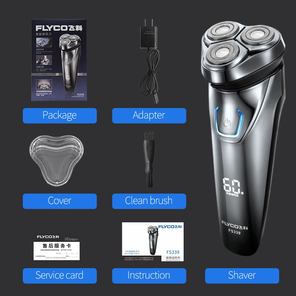 Product Name: Afeitadora eléctrica Flyco FS339 para hombres, maquinilla de afeitar eléctrica, Barbeador IPX7 a prueba de agua, 1 hora recargable, lavable y rotatorio
