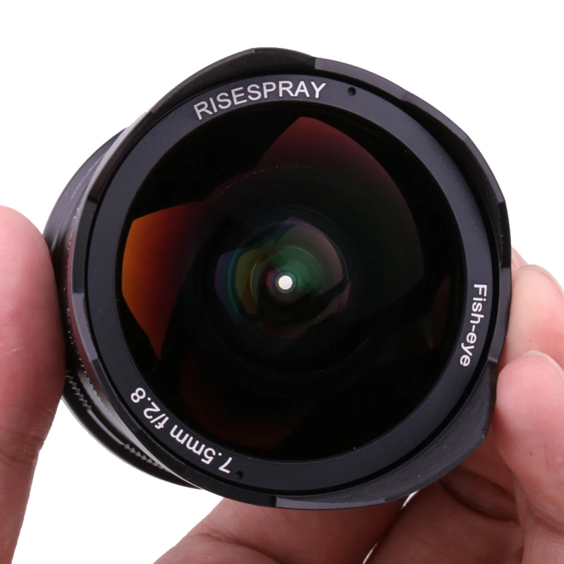 Product Name: RISESPRAY 7,5mm f2.8 lente de ojo de pez 180 APS C lente fija Manual para Olympus Panasonic Micro 4 3 M4 3 montaje E M1 E M1Mark II E M5