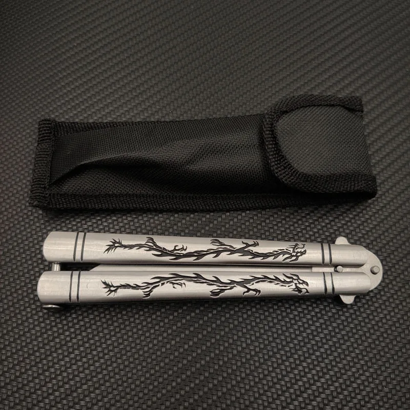 Special Offer Cuchillo plegable de acero inoxidable mariposa dragón patrón mango entrenamiento mariposa en cuchillo sin borde herramienta mate juguete para hacer ejercicio Discount 12% Today!