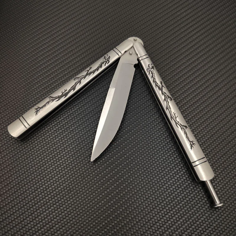 Product Name: Cuchillo plegable de acero inoxidable mariposa dragón patrón mango entrenamiento mariposa en cuchillo sin borde herramienta mate juguete para hacer ejercicio