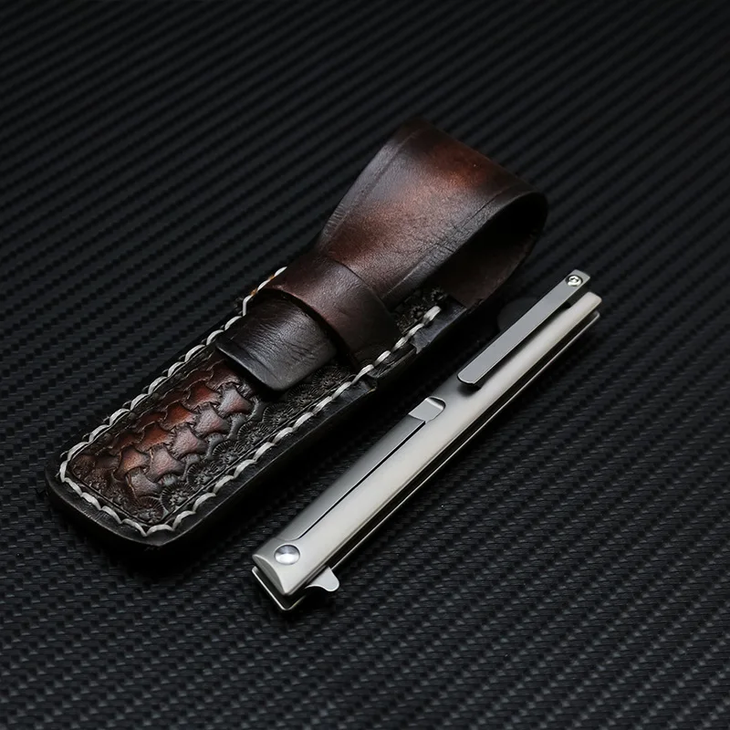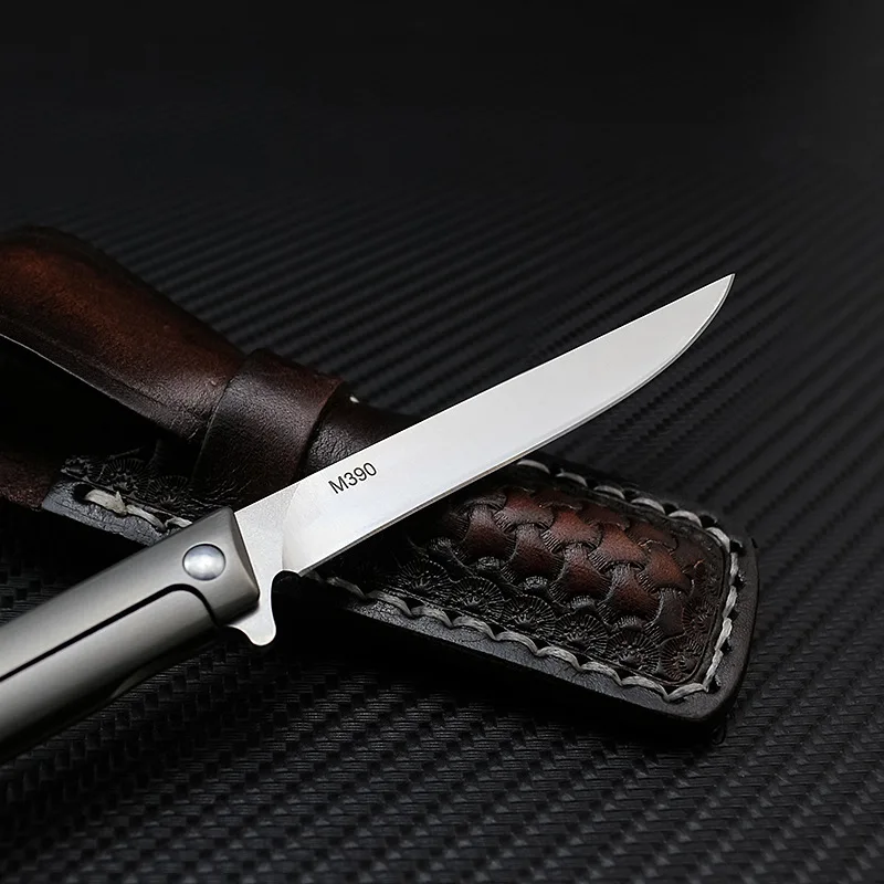 Product Name: Swayboo pluma cuchillo plegable aleación de titanio 60hr dureza M390 acero D2 al aire libre portátil EDC fruta cortador Funda de cuero