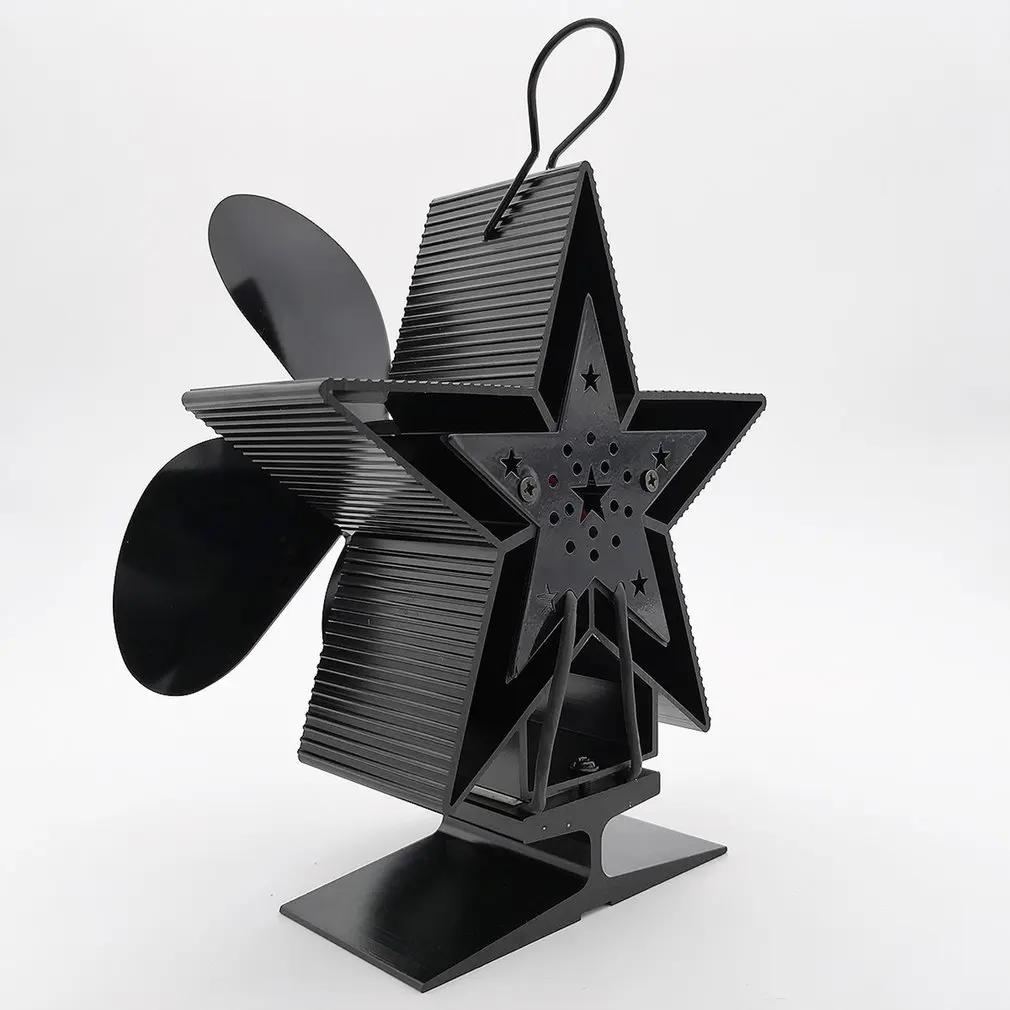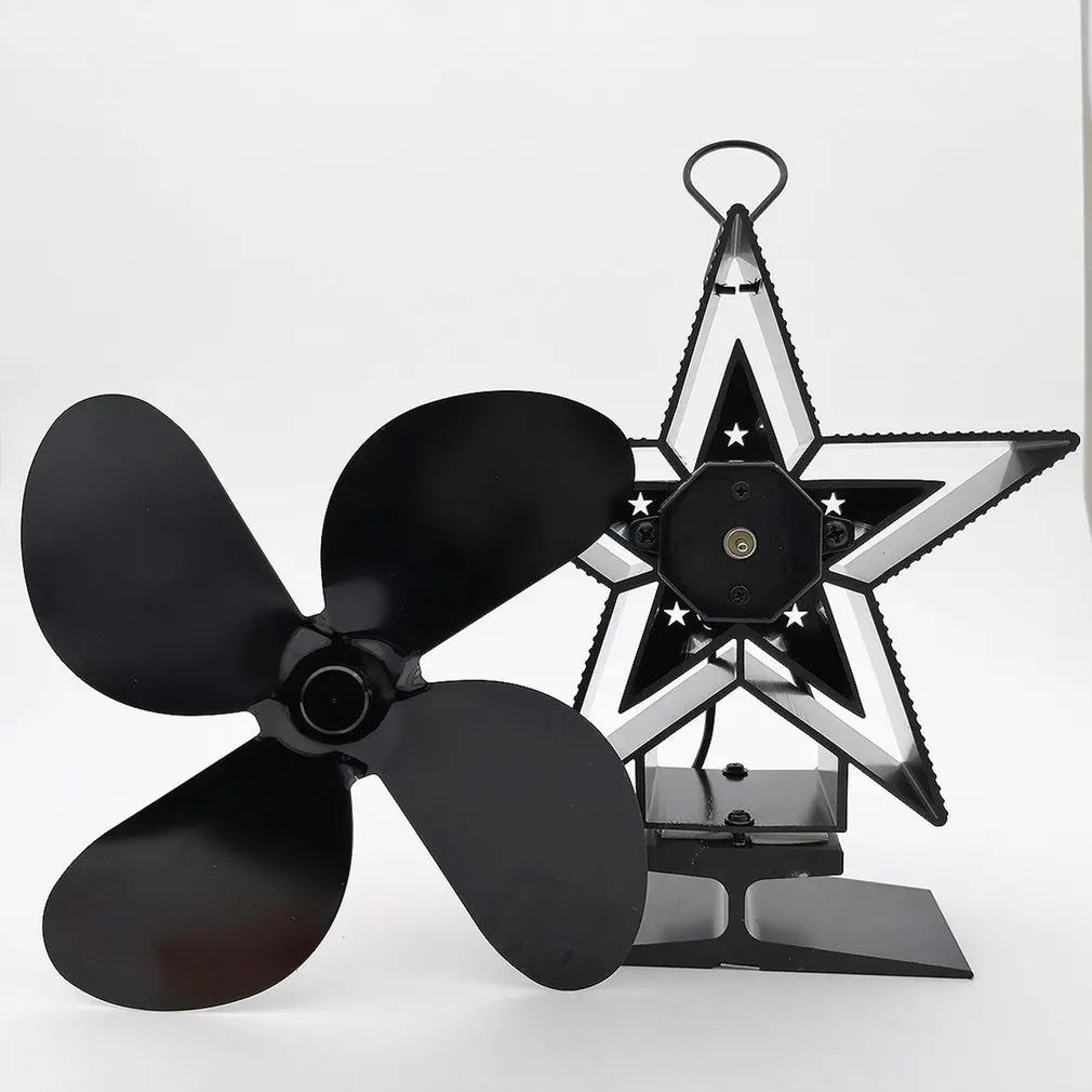 Product Name: Ventilador de cocina negro 4 aspas ventilador para hogar con calefacción quemador de madera komin ventilador ecológico silencioso para el hogar distribución eficiente del calor