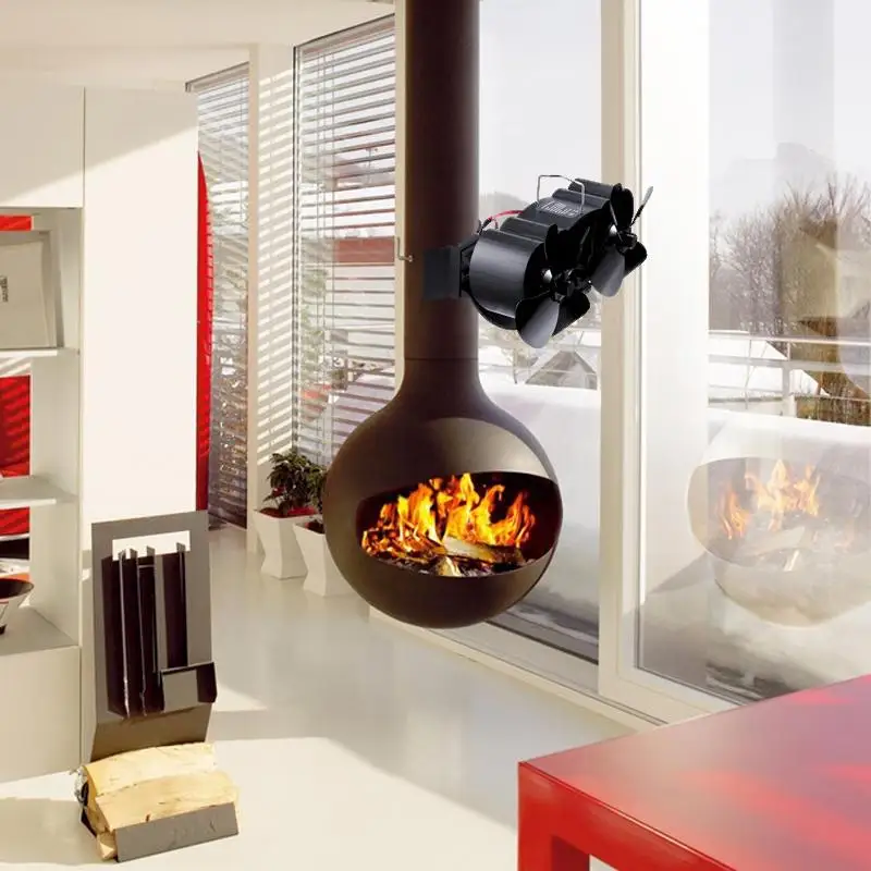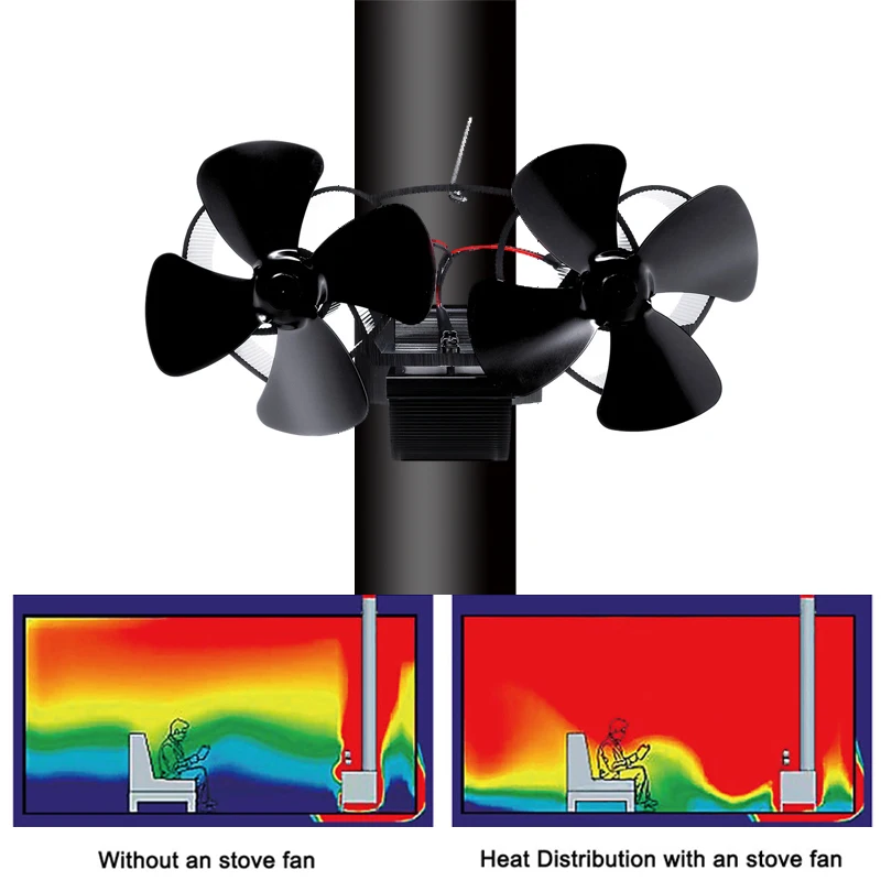Special Offer Ventilador de estufa montado en la pared de doble cabeza 8 aspas ventilador para hogar quemador de madera komin ventilador ecológico distribución eficiente del calor en el hogar Discount 40% Today!