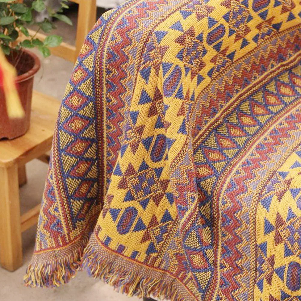 Special Offer Manta de toalla de felpilla Bohemia para sofá funda decorativa tira a cuadros Rectangular Boho costura viaje manta plana Discount 5% Today!