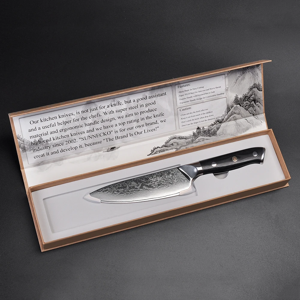 Product Name: Sunnecko Premium 6,5 \"Damasco acero Chef s Knife japonés VG10 acero núcleo cuchilla G10 mango profesional de alta gama de cuchillos de cocina