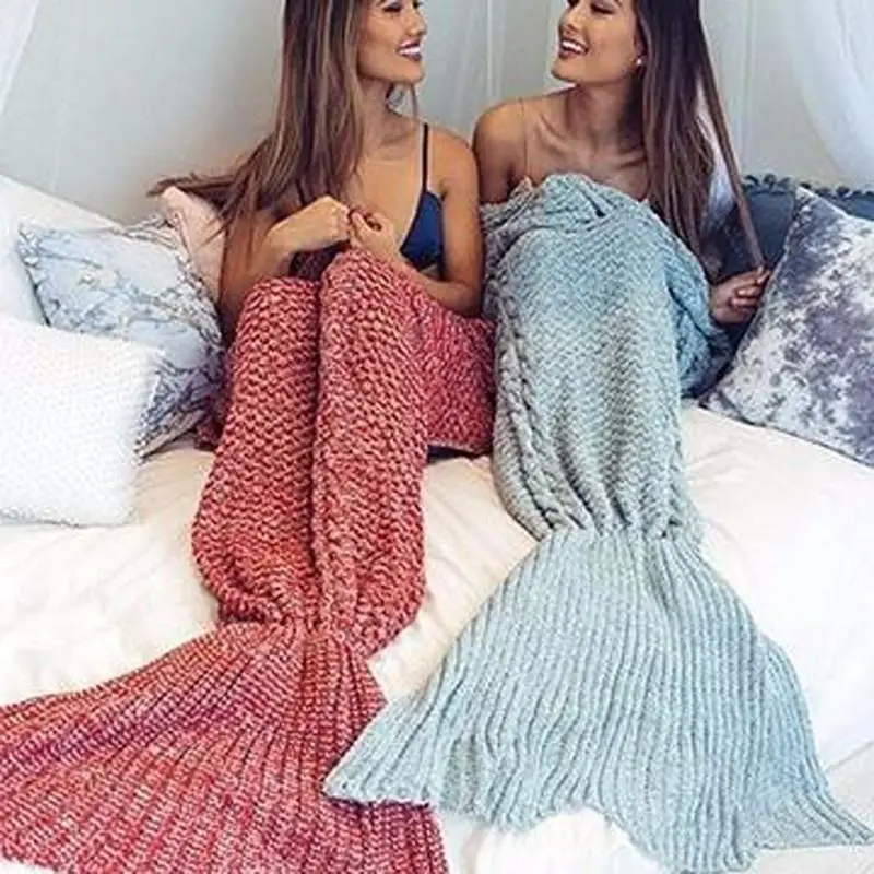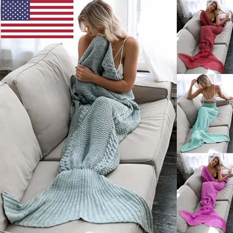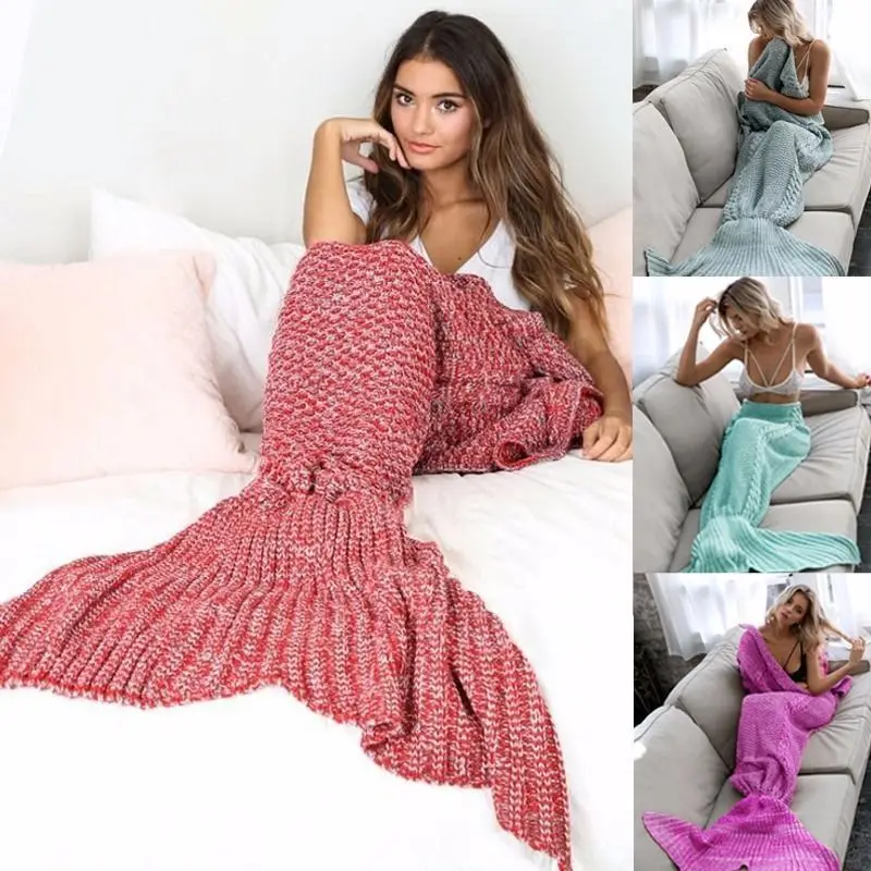 Special Offer Nueva moda sirena cola sofá manta Super suave caliente mano ganchillo manta de punto Discount 15% Today!