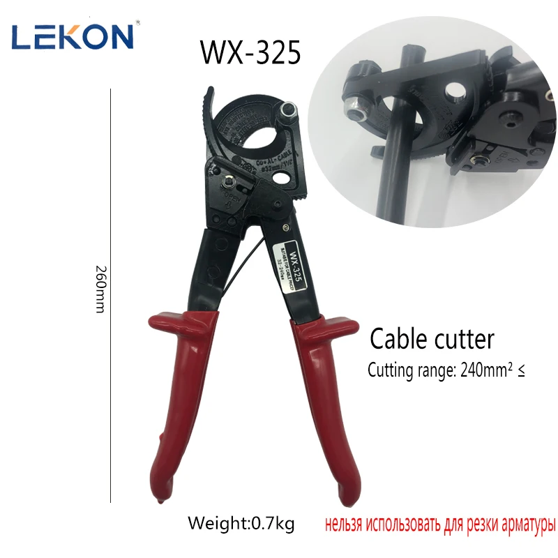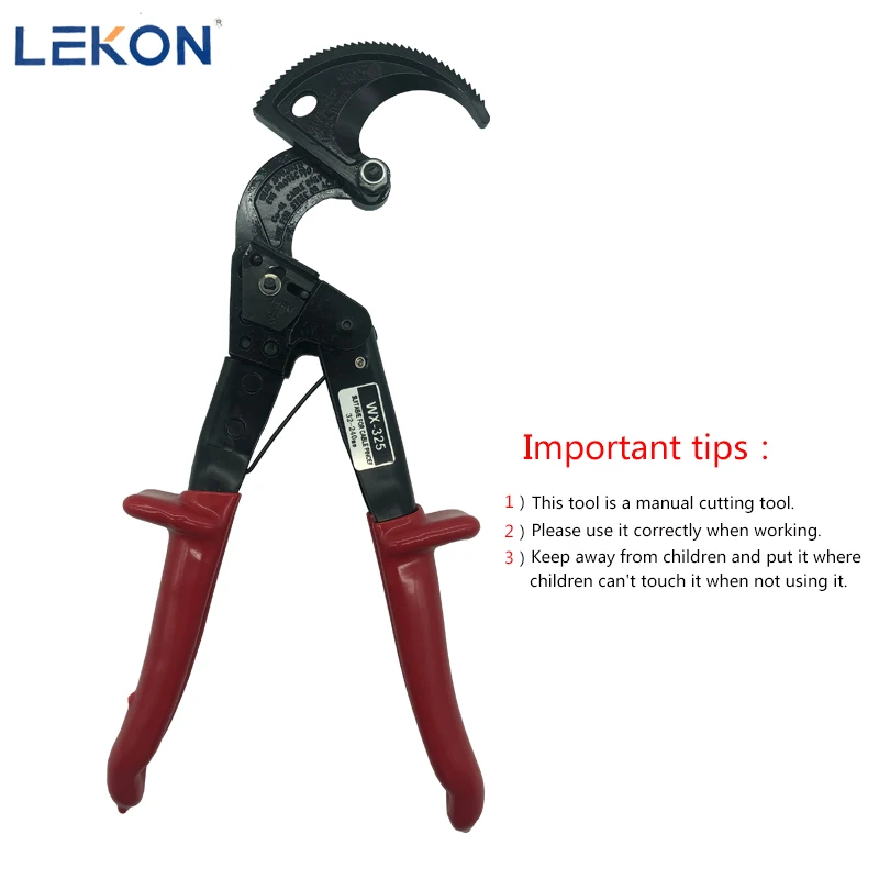 Product Name: Herramienta de corte de alambre de trinquete de tijera que ahorra trabajo, adecuada para cables aislados de cobre aluminio de menos de 240mm de LK 250