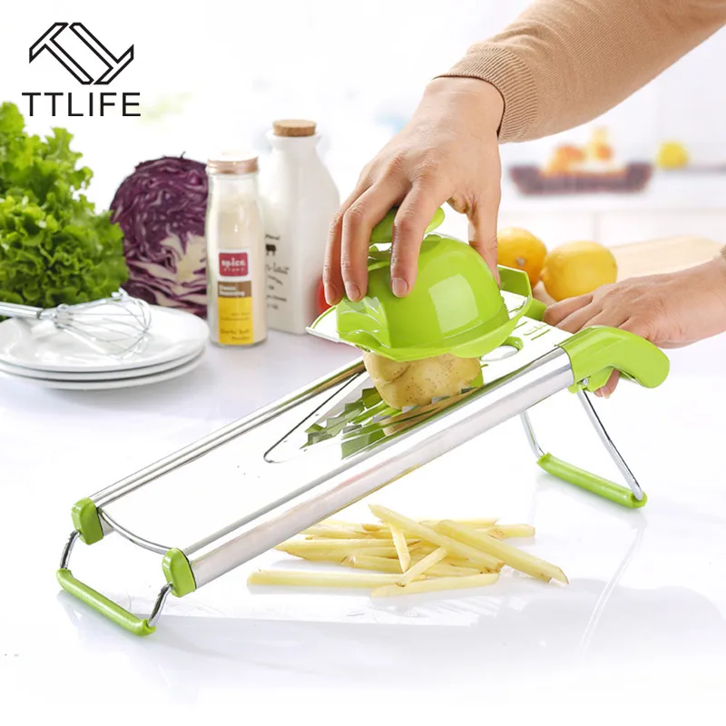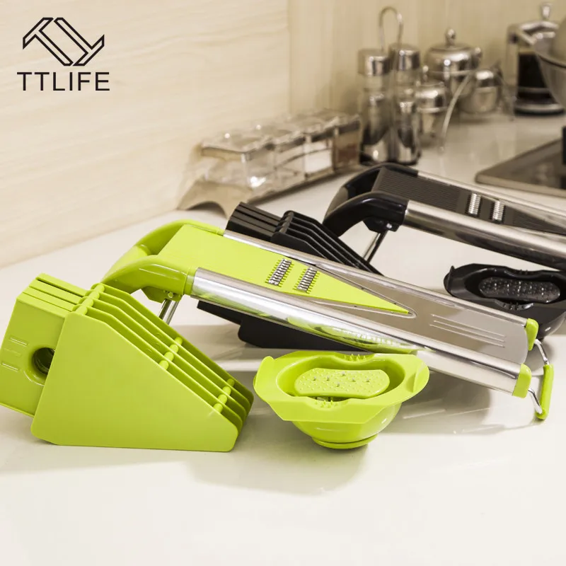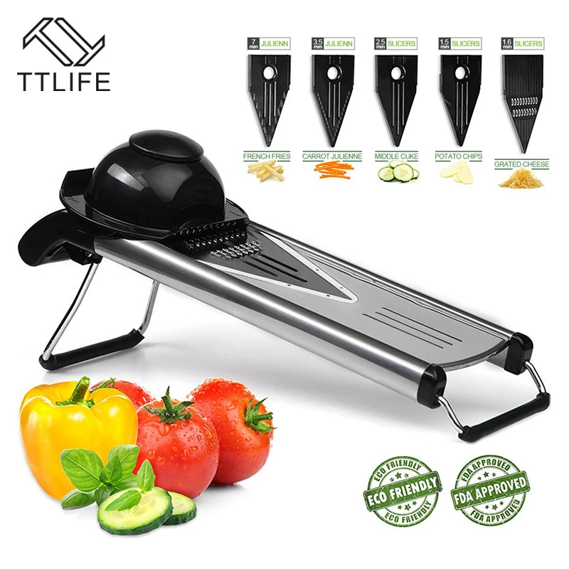 Special Offer TTLIFE V hoja de acero inoxidable fruta y comida mandolina rebanadora incluye 5 insertos diferentes cortador de verduras rallador de Color al azar Discount 24% Today!