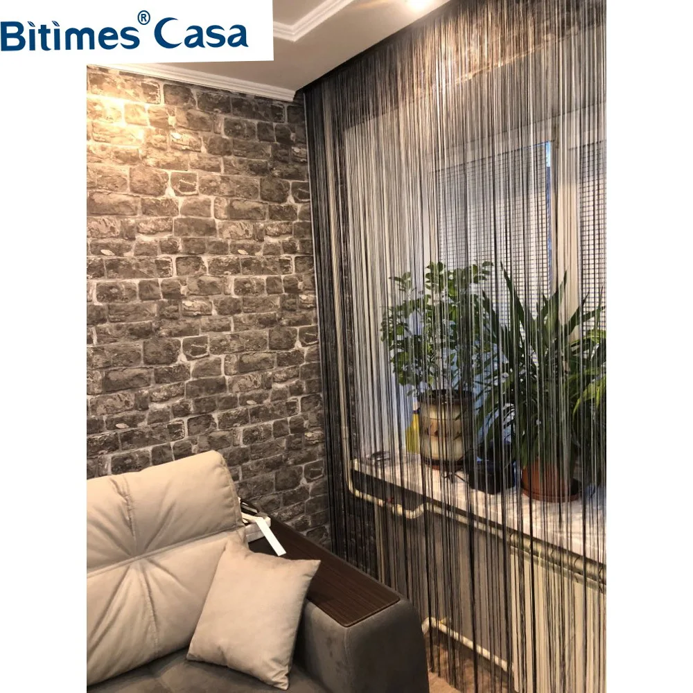 Product Name: Cortina de cuerdas decorativa de color sólido 300*300CM negro blanco beige línea clásica cortina ventana ciega vanguardia divisor de habitación