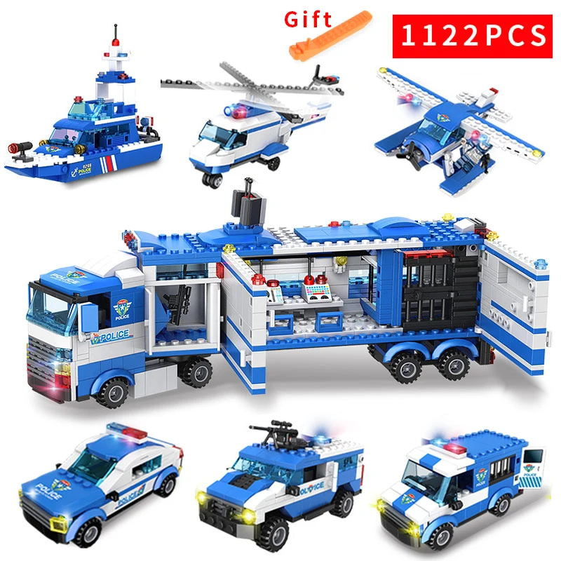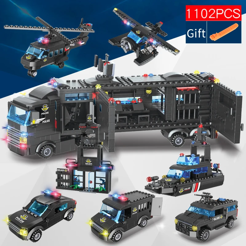 Product Name: Serie de bloques de construcción de la estación de policía de SWAT City Vehículo de helicóptero camión de equipo DIY ladrillos juguetes educativos para niños