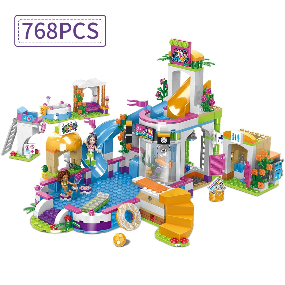 Special Offer 675 Uds amigos piscina de la ciudad parque acuático bloques de construcción juguetes Legoing niñas casa de amigos DIY ladrillos juguetes amigos Discount 45% Today!