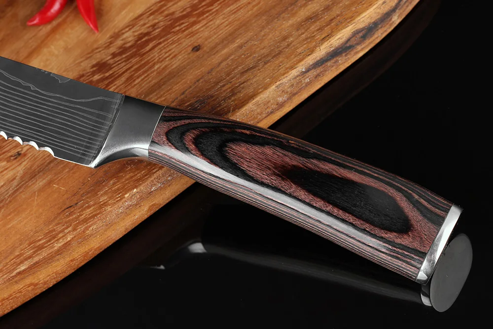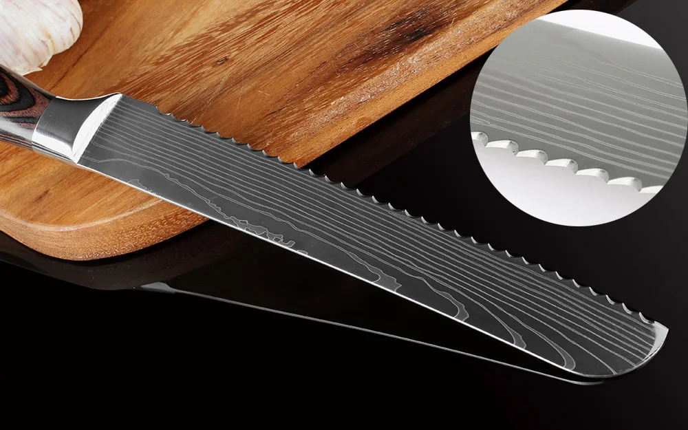 Product Name: XITUO cuchillo de cocina para cortar pan diseño dentado láser Damasco hoja de acero inoxidable 8 pulgadas cuchillos de Chef pan queso torta cortador herramienta