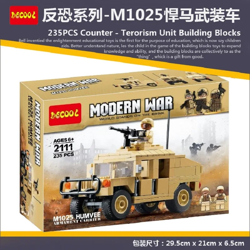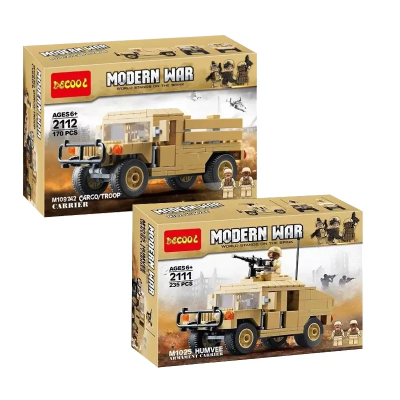 Product Name: Decool 2111 2112 War M1025 coche de carga Hummer US soldado de juguete bloques de construcción para legoes Military Wars set para minifigura LPS