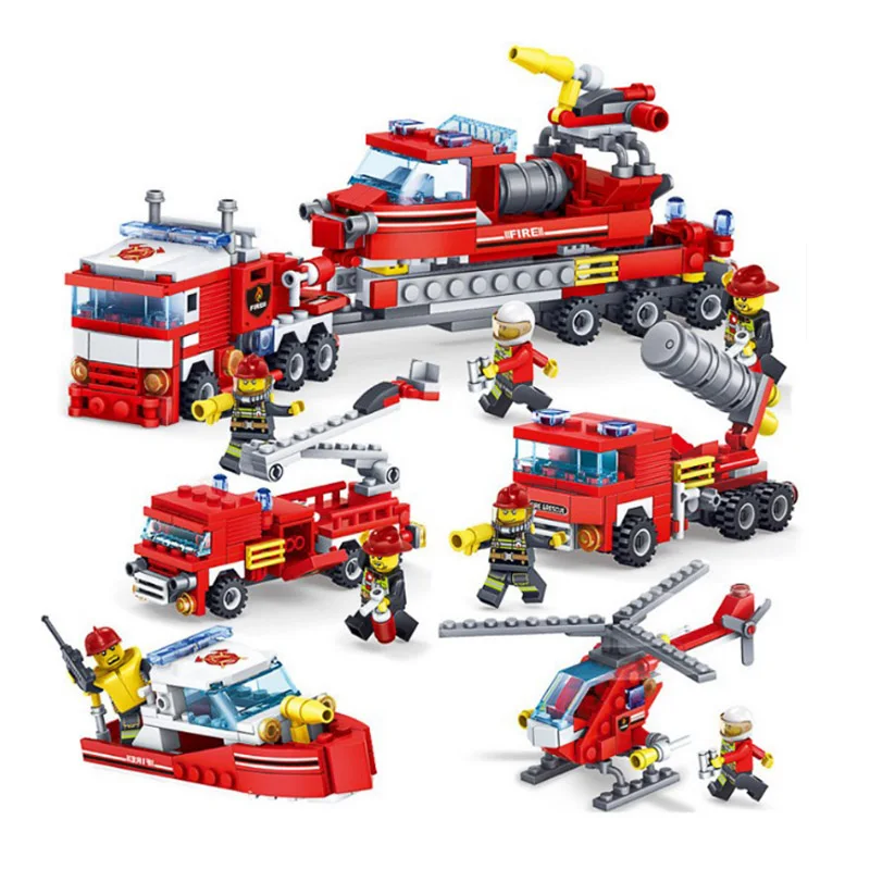 Product Name: 348 piezas 4 en 1 Legoinglys ciudad modelo bloques de construcción lucha contra incendios 4in1 camiones coche helicóptero barco bombero figura niños A