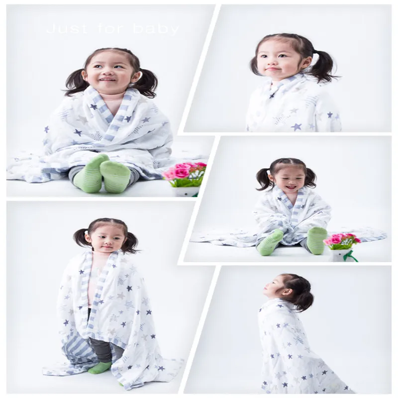 Product Name: Bebé envolver tres capas 70% bambú 30% algodón gasa recién nacido borde ancho bebé niño sueño manta 120x120cm