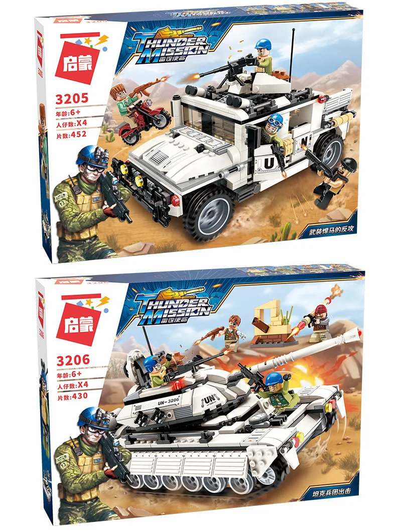 Product Name: 3205 452 Uds fuerza de mantenimiento de la paz Thunder Mision Hummer contracupuntura bloques de construcción niños juguetes para niños Legoings militares
