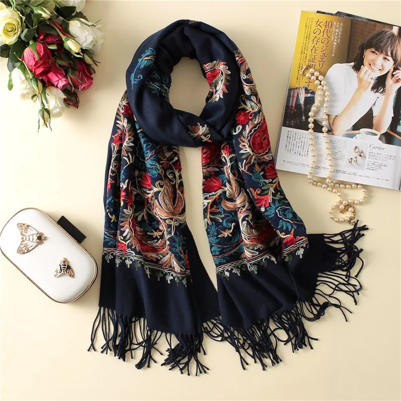 Product Name: 2019 marca de lujo de Cachemira mujer bufanda invierno cálido bordado chales y envolturas de lana pashmina largo femenino grueso Manta