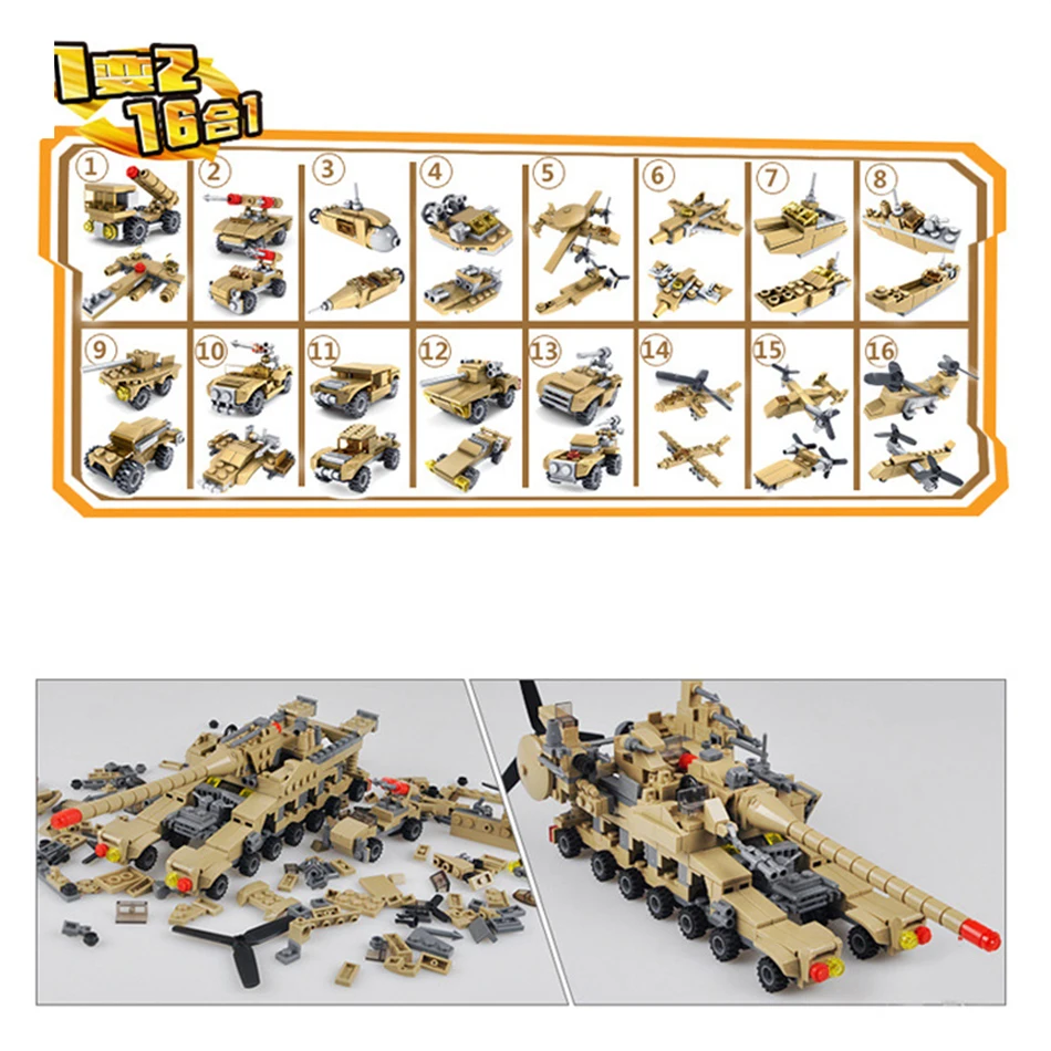 Special Offer HUIQIBAO 544 piezas 16 en 1 armas militares supertanques bloques de construcción Legoing ensamblaje juguetes educativos de ladrillos para chico Discount 40% Today!