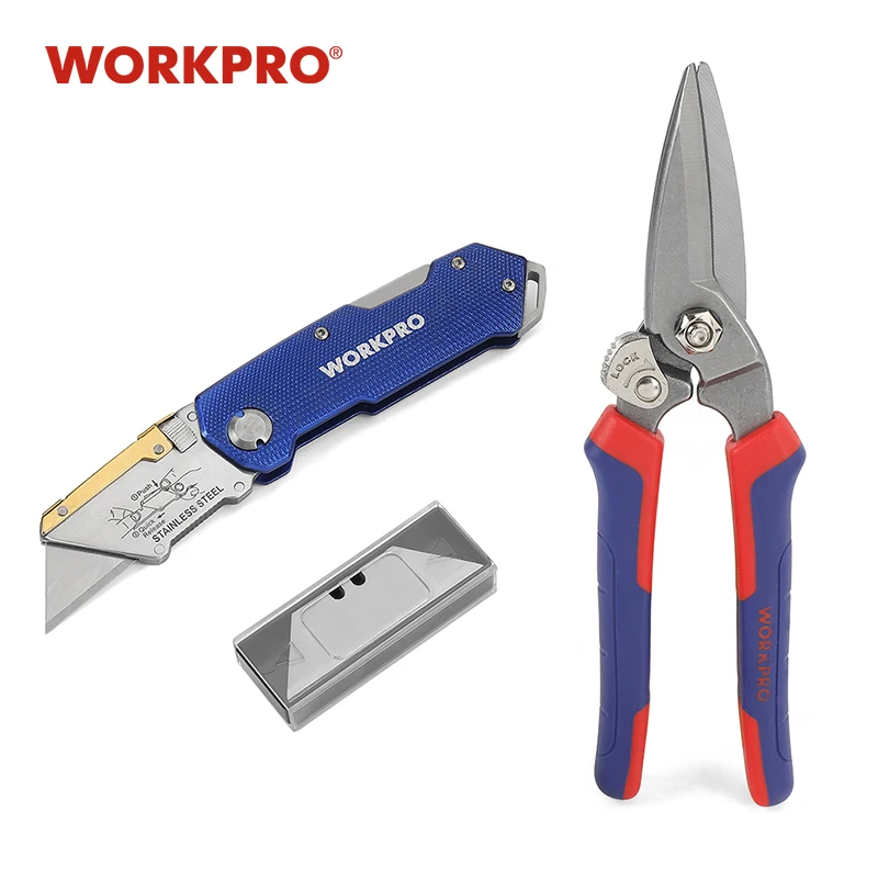 Product Name: Juego de cuchillos y tijera de trabajo, cuchillo plegable eléctrico con cuchillas, tijeras forjadas multiusos, Tijera