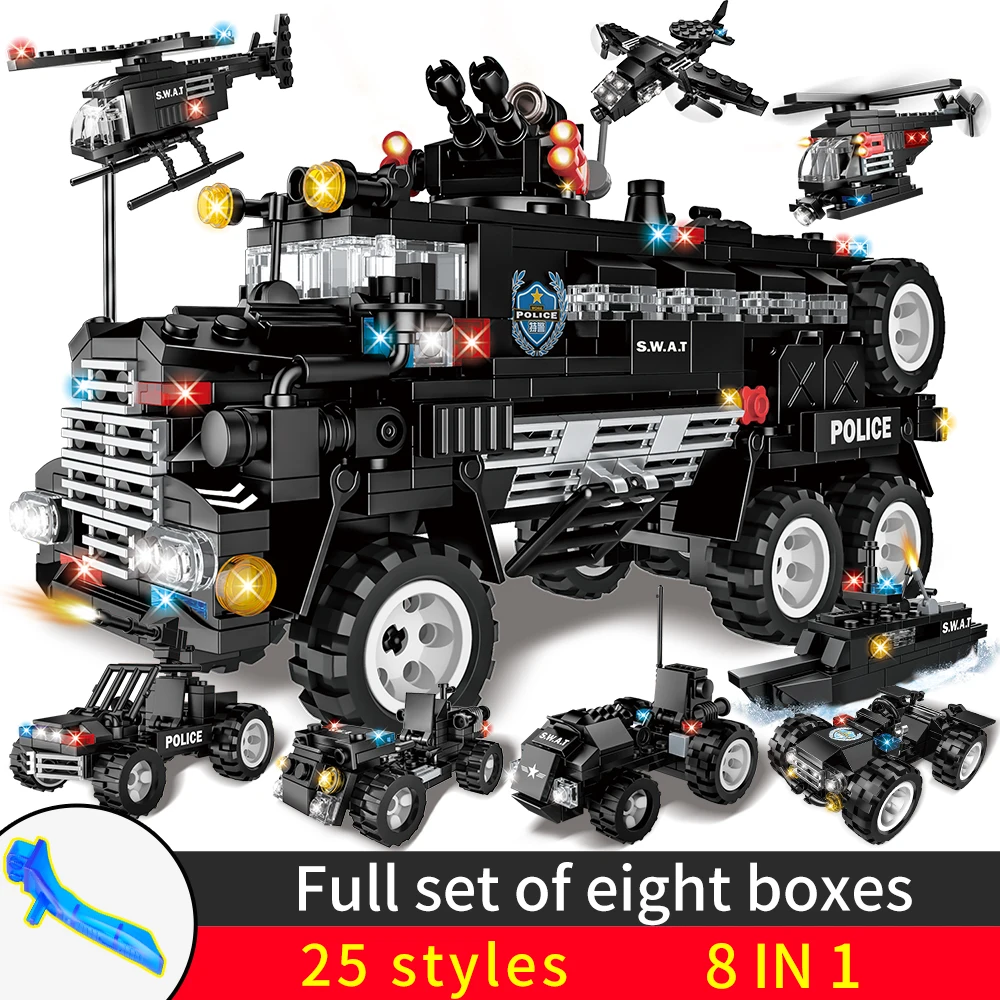Product Name: 8 en 1 SWAT serie de policía de la ciudad bloques de construcción ehicle helicóptero DIY ladrillos compatibles con LegoED bloque niños Juguetes