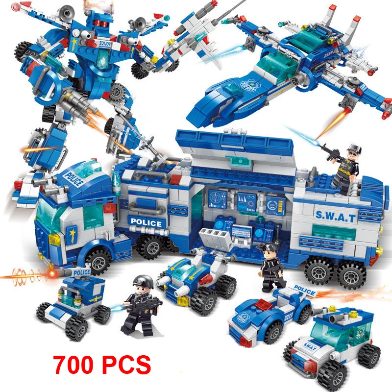 Special Offer 700 Uds ciudad policía SWAT camión bloques de construcción barco vehículo Legoing técnica DIY ladrillos juguetes Playmobil para niños regalo de Año Nuevo Discount 49% Today!