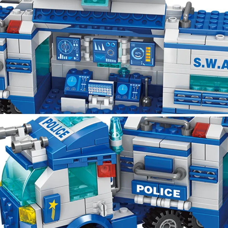 Product Name: 700 Uds ciudad policía SWAT camión bloques de construcción barco vehículo Legoing técnica DIY ladrillos juguetes Playmobil para niños regalo de Año Nuevo