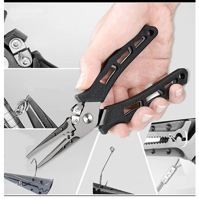Product Name: Alicates de Pesca de acero inoxidable de iLure, abrazadera, anillo dividido, cortador de línea de hoja de acero de tungsteno, herramienta multifunción para aparejos de Pesca