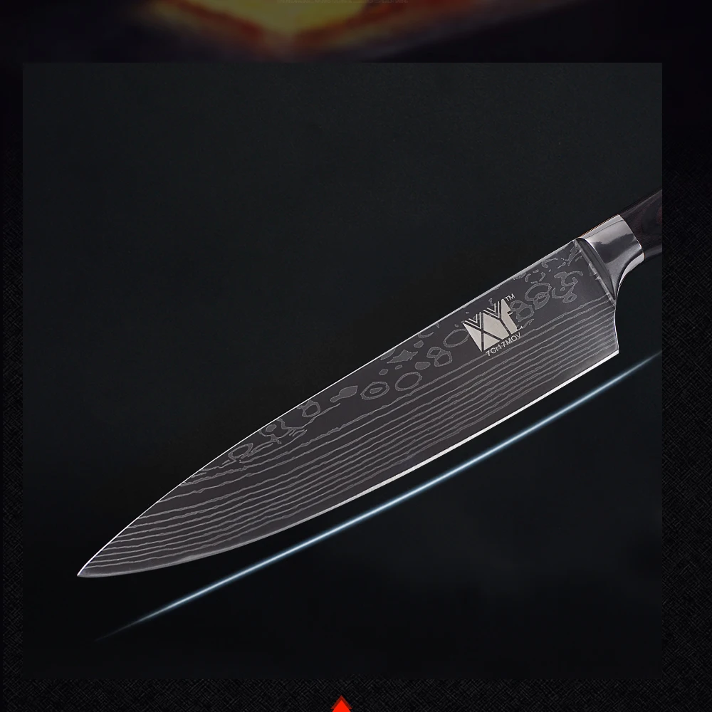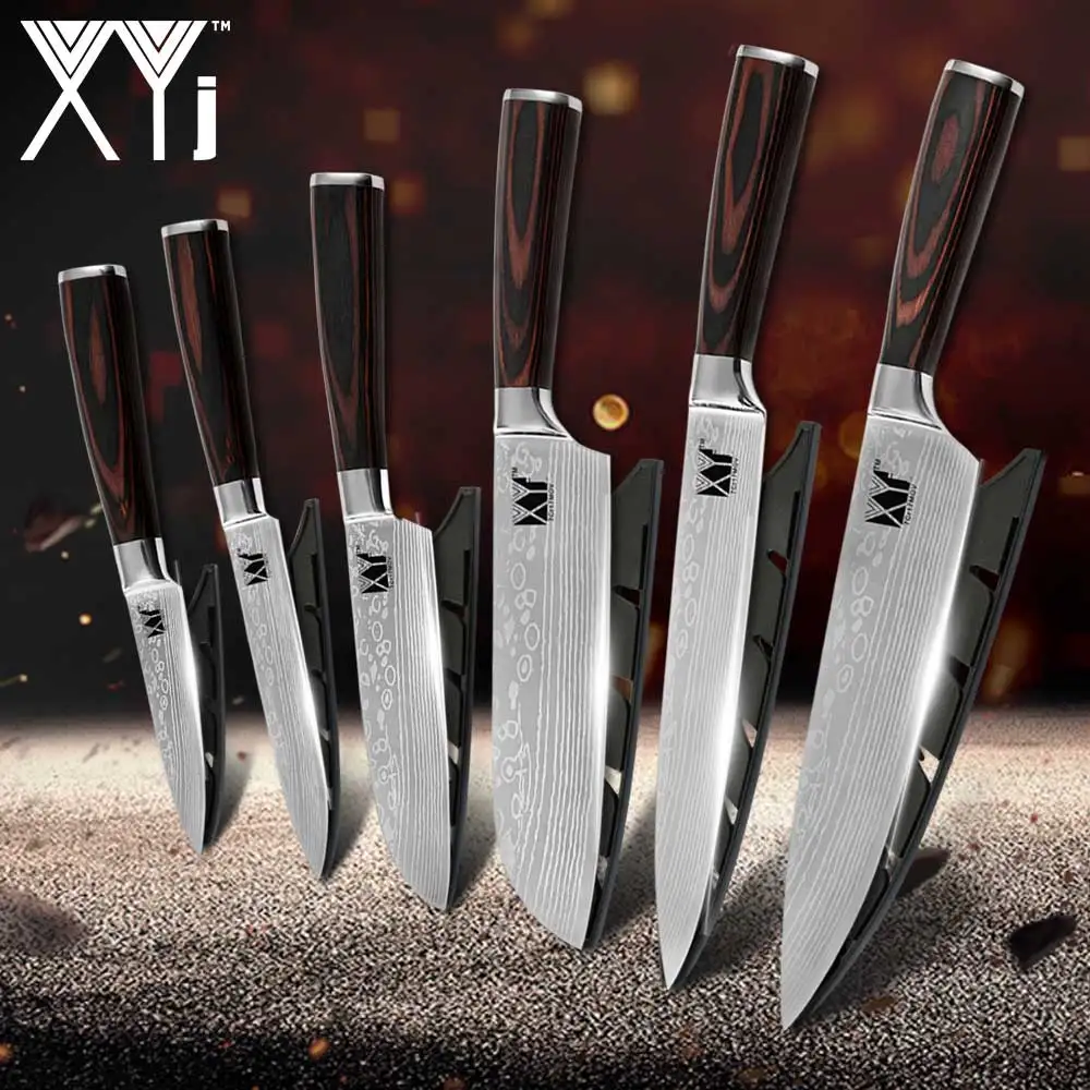 Product Name: XYj juego de cuchillos de cocina cuchillas de acero inoxidable Damasco láser juego de cuchillos chef rebanando Santoku Utility pelar utensilios de cocina