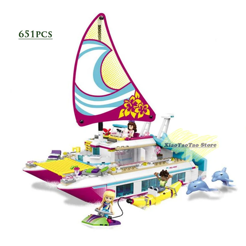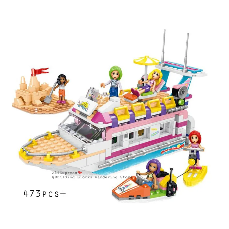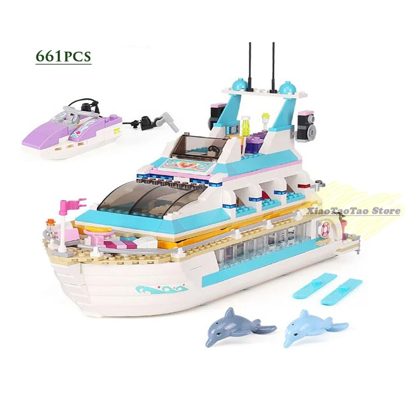 Special Offer Bloques de construcción para niñas, barco de vacaciones, bloques de construcción en 3D, juguetes para niños, regalos para amigos compatibles, juguetes para yates de delfines Discount 15% Today!