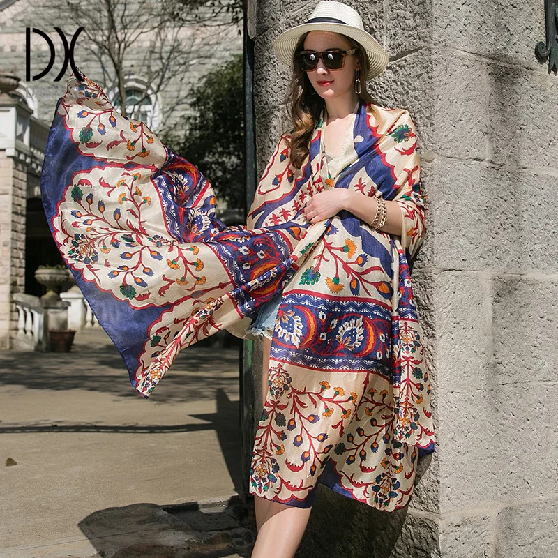 Special Offer Bufanda larga de seda 2019 marca de lujo para mujer nuevo diseño de manta de playa chal ropa de baño Bandana Hijab cara escudo Foulard 245*110cm Discount 20% Today!