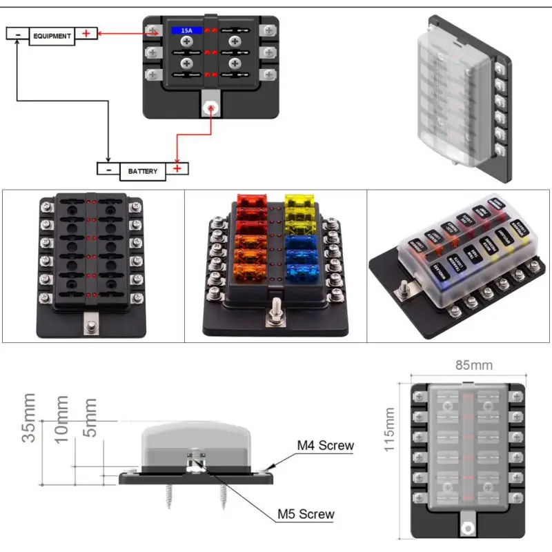 Product Name: Soporte de caja de fusibles de cuchilla de 12 vías 12V 24V para coche bote marino caravana coche triciclo fusibles con luz de advertencia indicadora LED