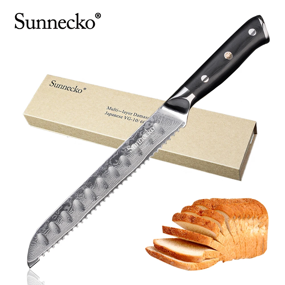 Special Offer Cuchillo de pan profesional SUNNECKO de 8 pulgadas 73 capas de acero de Damasco cuchillas afiladas de cocina mango G10 cortador de torta cuchillo Discount 57% Today!