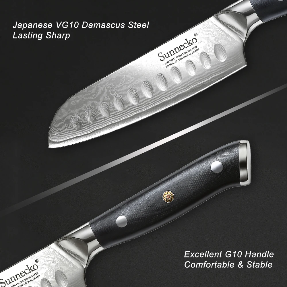 Special Offer Sunnecko 5 \" 7\" Santoku Chef cuchillo de cocina japonés Damasco VG10 acero cuchilla afilada herramientas de corte de carne mango G10 Discount 65% Today!