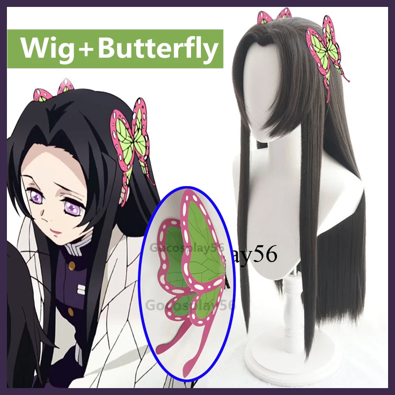 Special Offer Blade of Demon Slayer Kochou Kanae peluca negra Cosplay Peluca de pelo sintético peluca larga recta para mujeres Halloween concierto juego de rol Discount 9% Today!