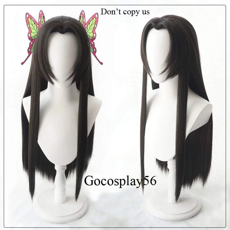 Product Name: Blade of Demon Slayer Kochou Kanae peluca negra Cosplay Peluca de pelo sintético peluca larga recta para mujeres Halloween concierto juego de rol