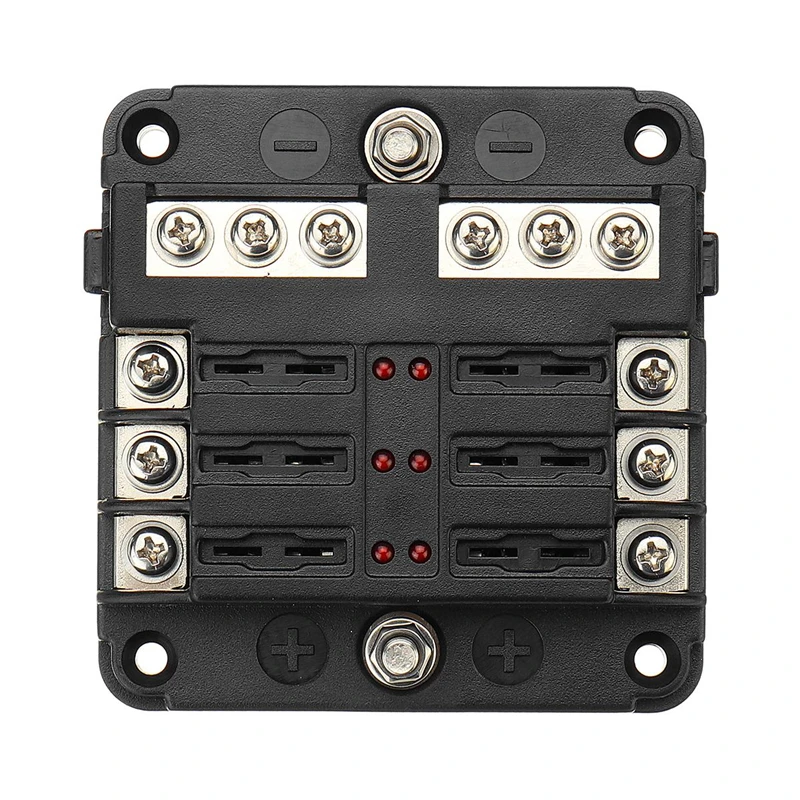 Product Name: 6Way 12V 24V Auto coche de distribución de energía cuchilla fusible soporte caja de bloque de Panel de cartón caja de fusibles con LED indicador 1 en y 6 fuera
