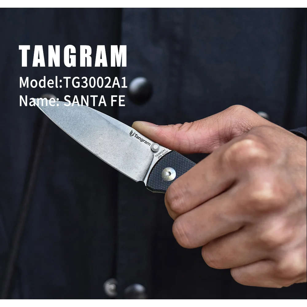 Product Name: Cuchillo plegable TANGRAM cuchillo de bolsillo de supervivencia táctico Japón Acuto440C llevar cada día EDC mango Material G10 AZO Santa Fe TG3002