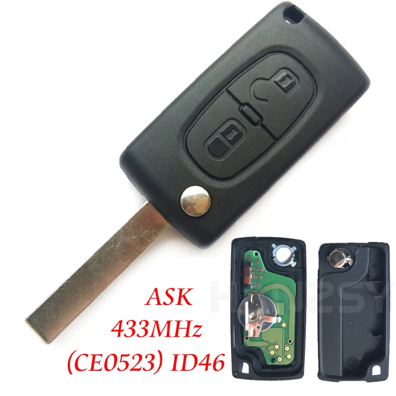 Product Name: 2 botones de Control remoto clave para PEUGEOT 807, 407, 207, 307, 308 CE0523 coche plegable clave ID46 Chip 433MHz HU83 VA2 hoja