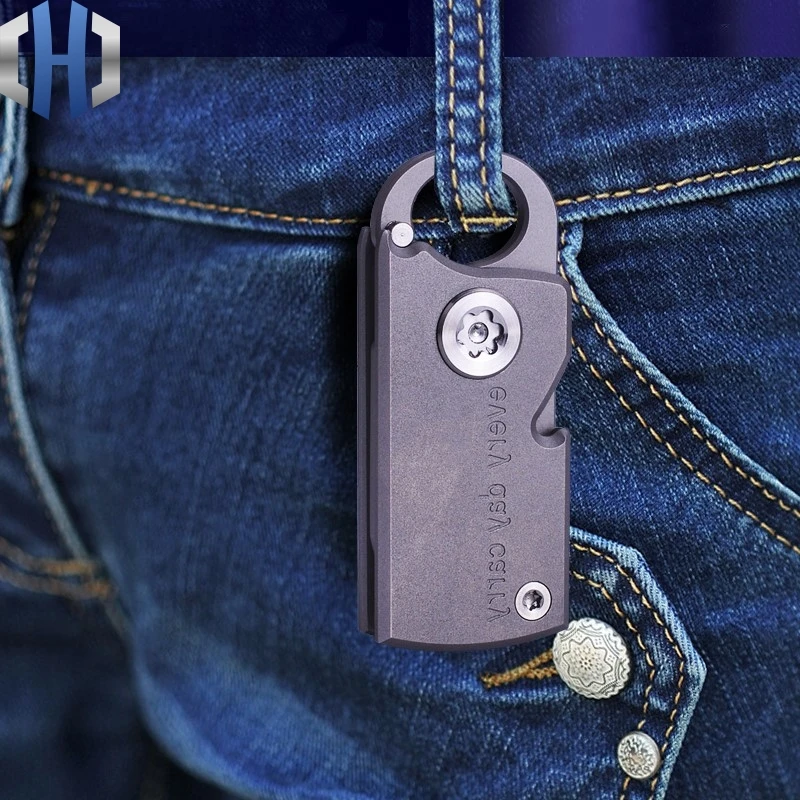 Product Name: Mini llavero de bolsillo cuchillo plegable expreso fuera de la Caja cuchillo de corte EDC exterior Tc4 titanio puede DIY