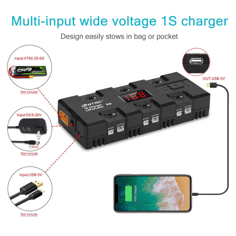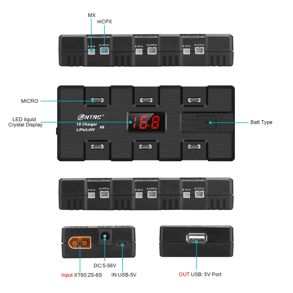 Product Name: HTRC 3,7 V 1S LiHv Lipo cargador de batería con MICRO MX mCPX puerto USB para la lámina Inductrix RC Racing dron Quadcopter RC cargador