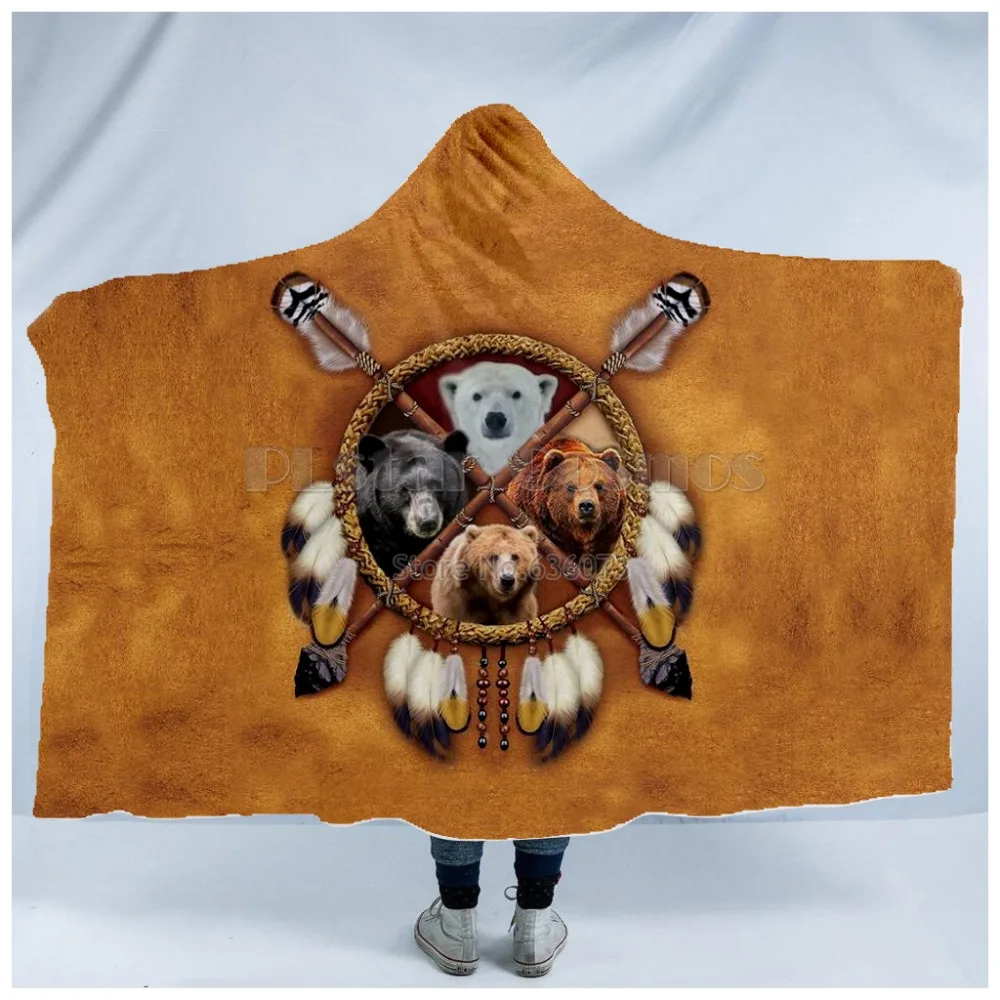 Product Name: Plstar universo oso tótem indio nativo con capucha manta 3D impresión completa cobija vestible adultos hombres mujeres estilo 9