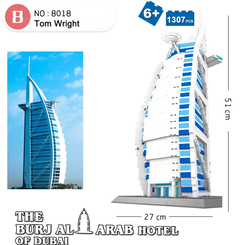 Special Offer Wange 8018 1307 Uds Dubai Burj Al Arab Hotel bloques de construcción creativos DIY regalos ladrillos juguetes para niños Discount 23% Today!