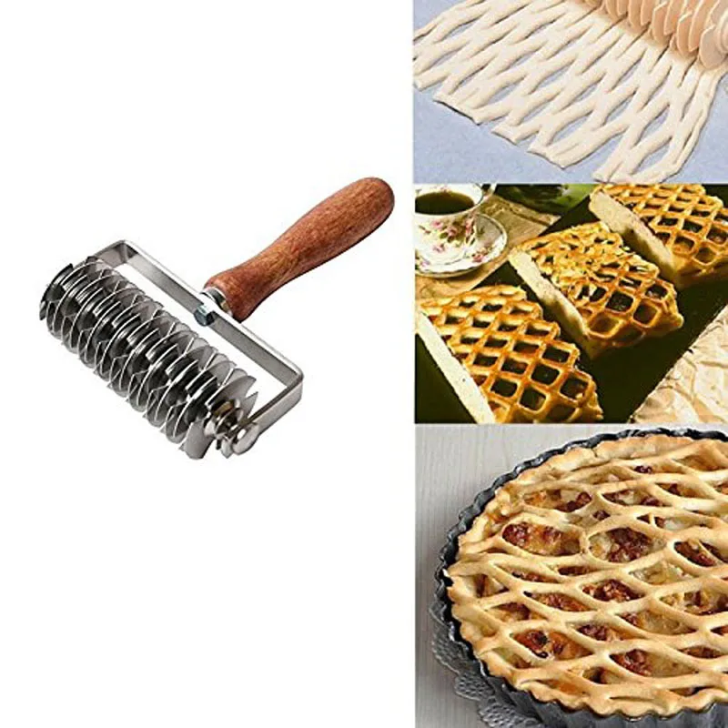 Product Name: Cortador de Pizza de acero inoxidable utensilios de cocina rodillo para pasta mango de madera redondo. Cortador de acero cuchillo cortador con cuchillas herramientas de pastelería
