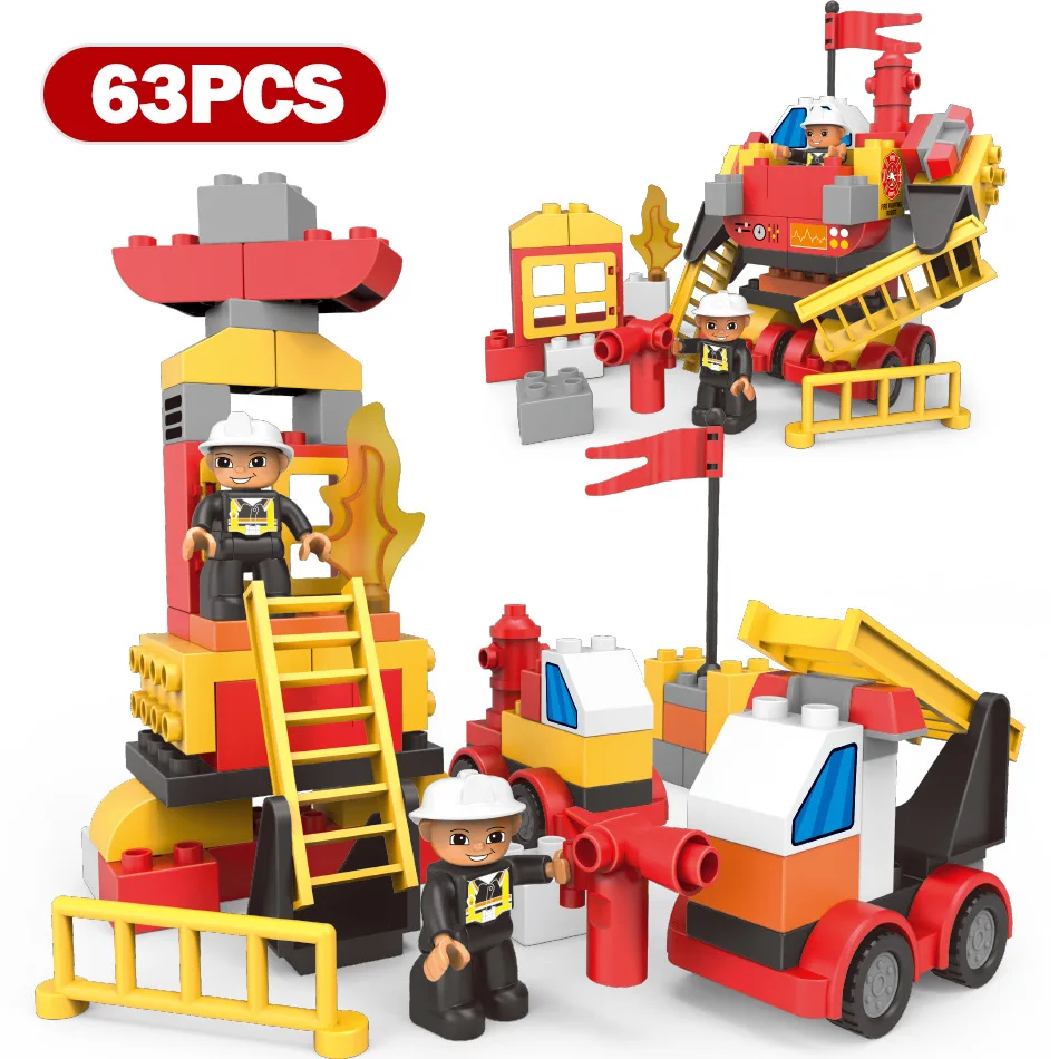 Special Offer Serie de la ciudad de gran tamaño de la ingeniería de Bomberos de bomberos figuras de bloques de construcción Compatible Duploe ladrillos juguetes para niños Discount 33% Today!