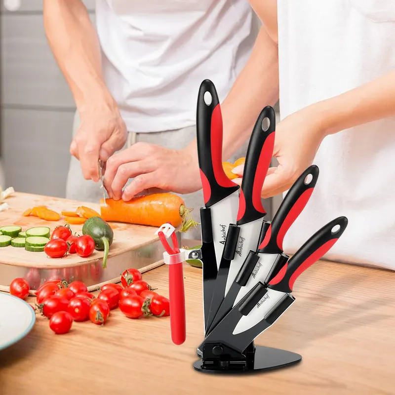 Product Name: Cuchillos de cocina cuchillos de cerámica accesorios set 3 \"corte 4\" Utility 5 \"rebanado 6\" Cuchillo de chef + soporte + pelador hoja blanca