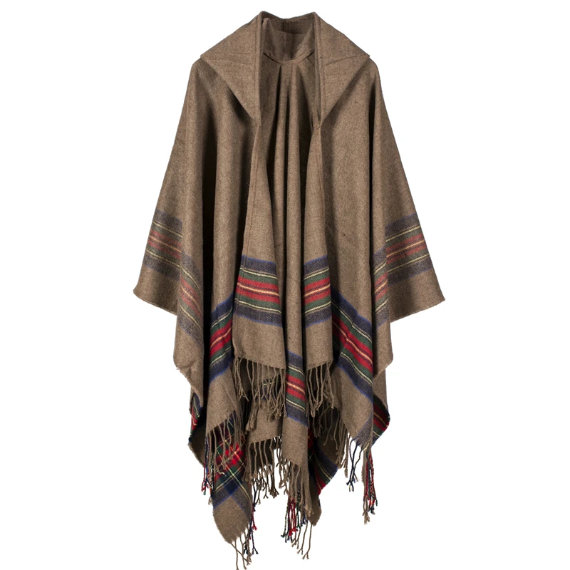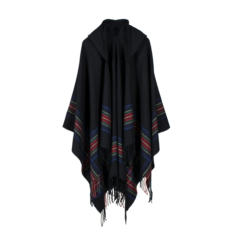 Product Name: Nueva moda mujer chal y envolturas de invierno gruesa manta cálida bufanda oversize con capucha negro ponchos y capas a rayas borla echarpe