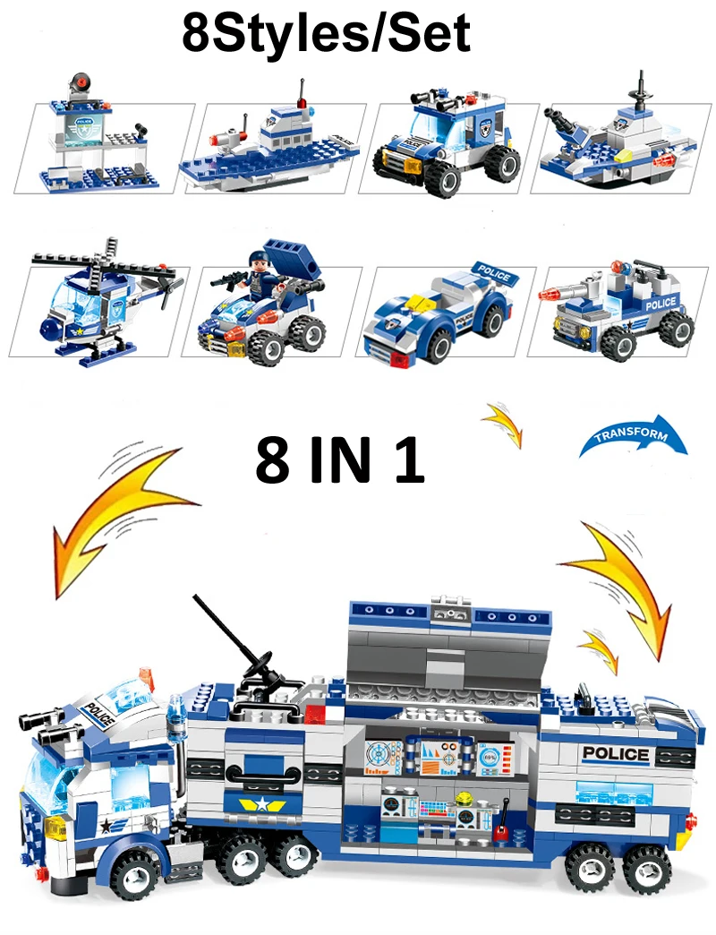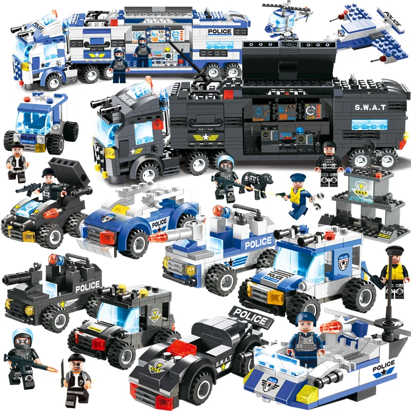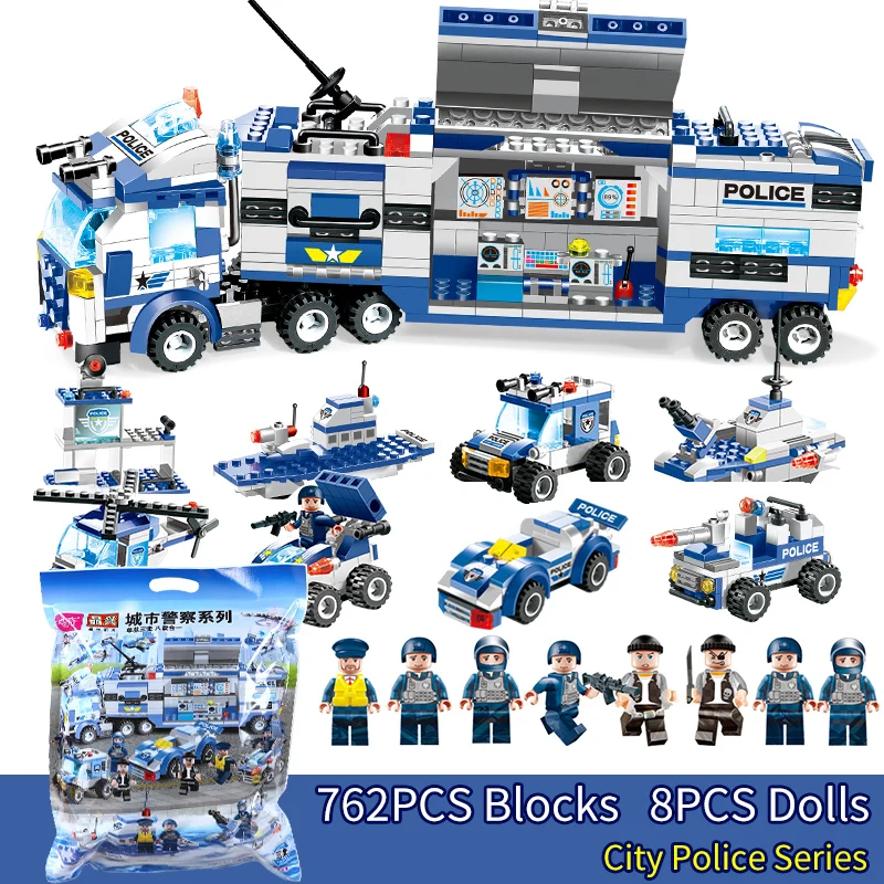 Product Name: Serie de policía de ciudad SWAT 647 Uds 762 Uds 8 en 1 camión arma DIY ladrillos bloques de construcción juguete para niño Compatible con Legoinglys