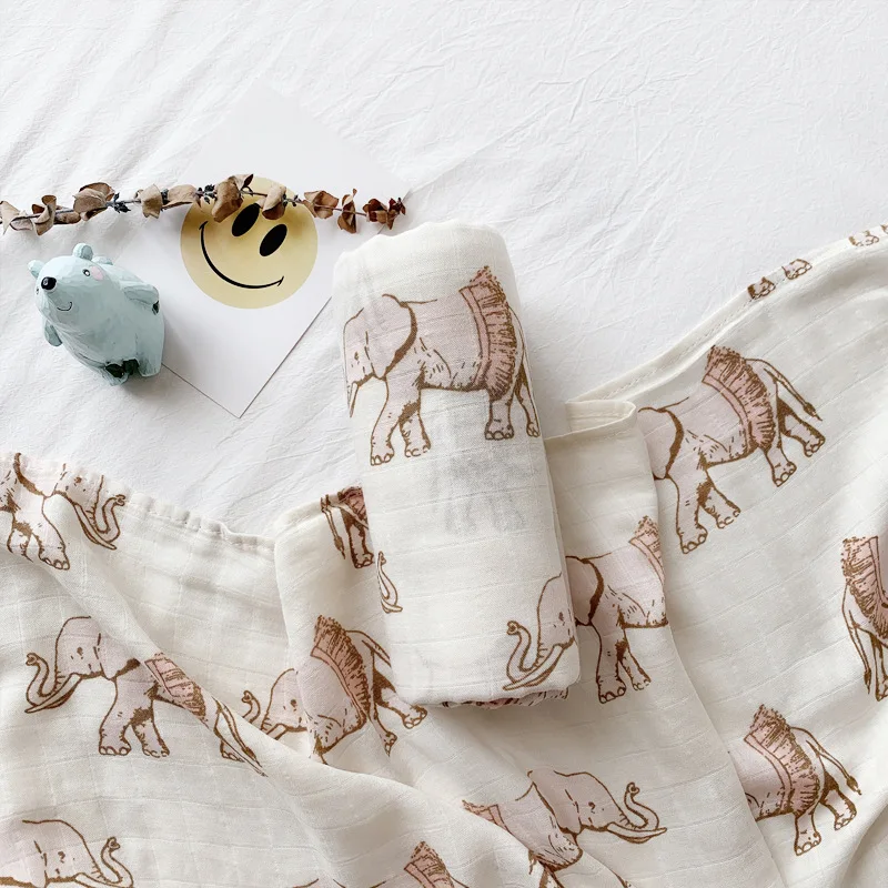 Special Offer Muselina de dos capas de bambú + algodón Camel León elefante animal patrón bebé envoltura muselina swaddle recién nacido mantas gasa abrigo infantil Discount 5% Today!