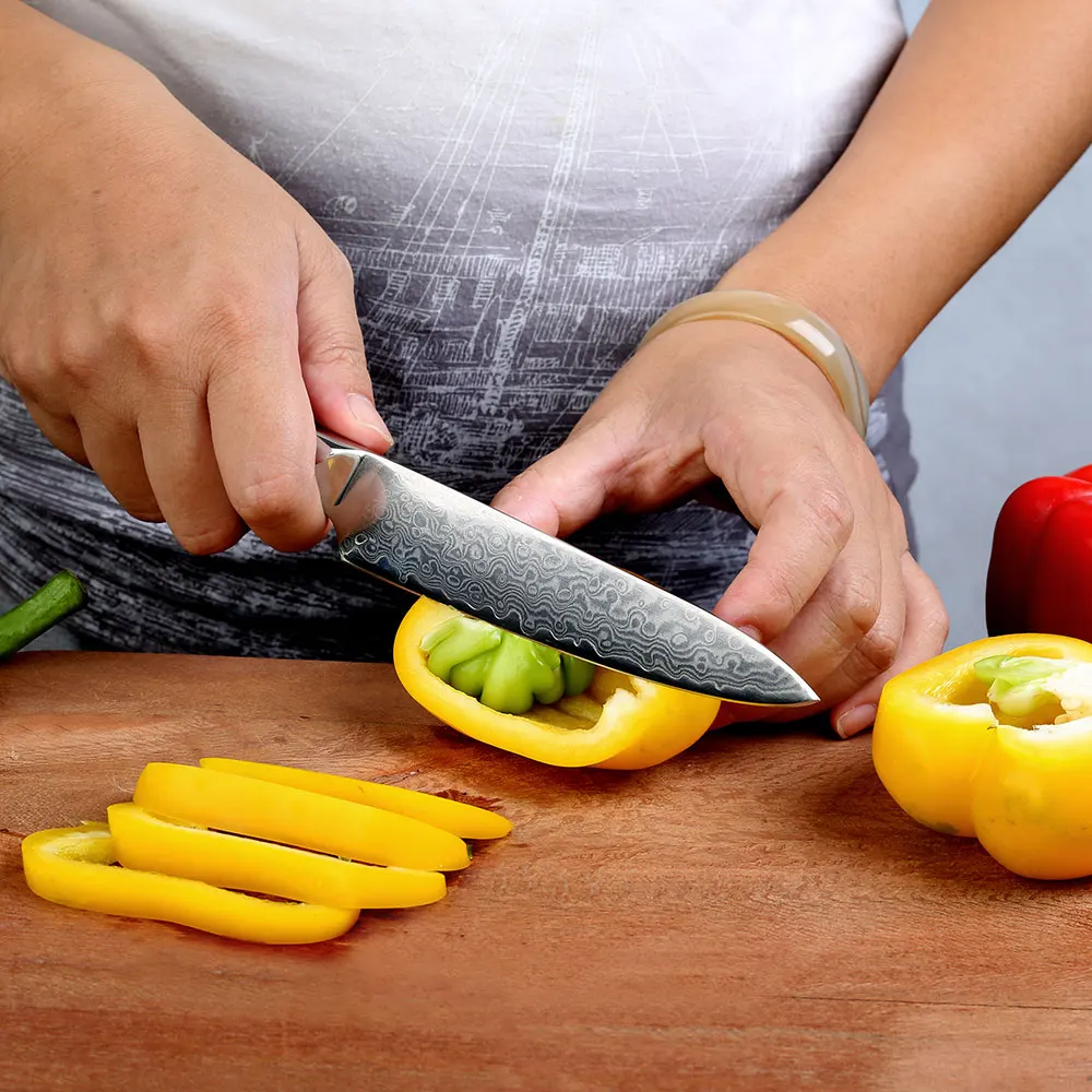 Product Name: Superior SUNNECKO 5 \"pulgadas cuchillo de cocina utilitario japonés VG10 cuchilla afilada de acero G10 mango Damasco cuchilla rebanada